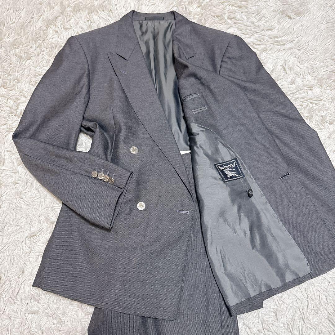 バーバリーブラックレーベルの3ピーススーツです。濃紺に青緑色(青銅色)のピンストライプになります。背抜き、サイドベンツ、本切羽。ボタンにブラックレーベルの刻印があります。ストライプ柄が上品で、ビジネスシーンにもフォーマルな場にも活躍できるスーツです。クローゼット整理のため出品いたします。美品で目立った傷や汚れはありません。自宅保管のため、神経質な方はご遠慮ください。【ブランド】BURBERRY BLACK LABEL【カテゴリ】3ピーススーツ【商品の状態】美品 【サイズ】38R 【素材】表地: 羊毛 100% 【色】ネイビー系《実寸》平置き、素人採寸になります肩幅:44cm、身幅:48cm、袖丈:60cm、着丈:76cmW:84cm、股下:73cm、裾幅:19cmよろしくお願いいたします。